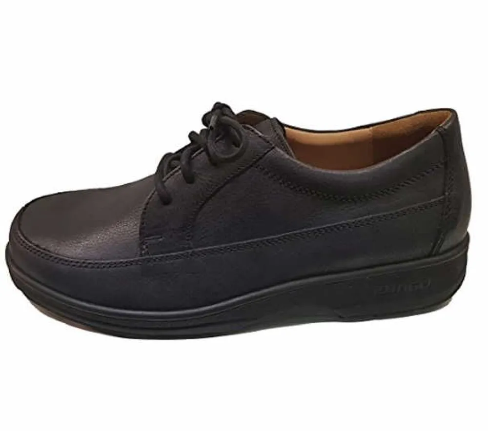 Schöner Herren Komfort-Schnürschuh von der Qualitäts-Marke Ganter aus einem feinen hochwertigem Ledermaterial in der Farbe schwarz. Innen ist der Schuh mit einem cromfrei gegerbtem Leder ausgestattet. Die Decksohle ist aus echtem Leder verarbeitet und bietet optimalen Halt und Luftdurchlässigkeit. Der Schuh verfügt über eine etwas breitere Weite. Der Absatz ist durchgehend flach. 2 cm. Die rutschfeste Sohle des Schuhs bietet in jeder Wetterlage (Regen, Eis, Outdoor) einen guten Halt. Der Artikel verfügt über einen Schnürverschluß. Die runde Schuhspitze macht den Schuh elegant am Fuß und hat genügend Platz für Ihren Fuß und Ihre Fußzehen. Dieser Schuh hat einen weichen Gehcomfort. Die Schuhe sind ideal für die Freizeit, da Comfort, Tragegefühl und Verarbeitung so ausgerichtet sind, dass Sie den ganzen Tag ohne Probleme tragen können.