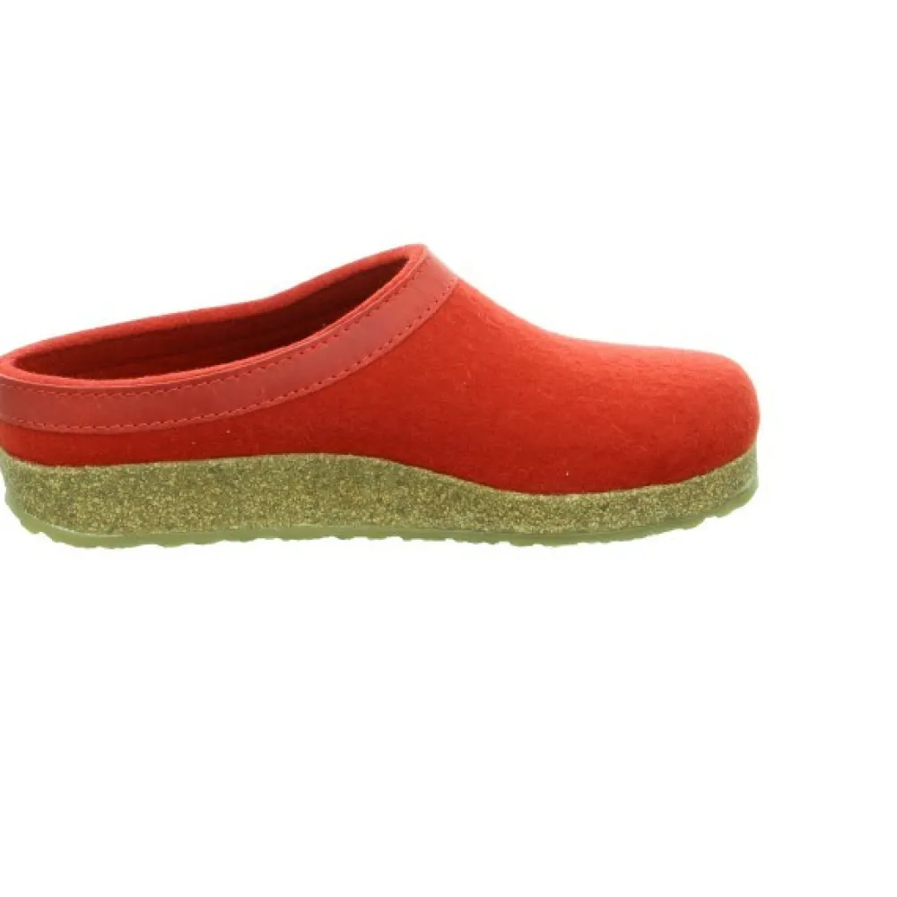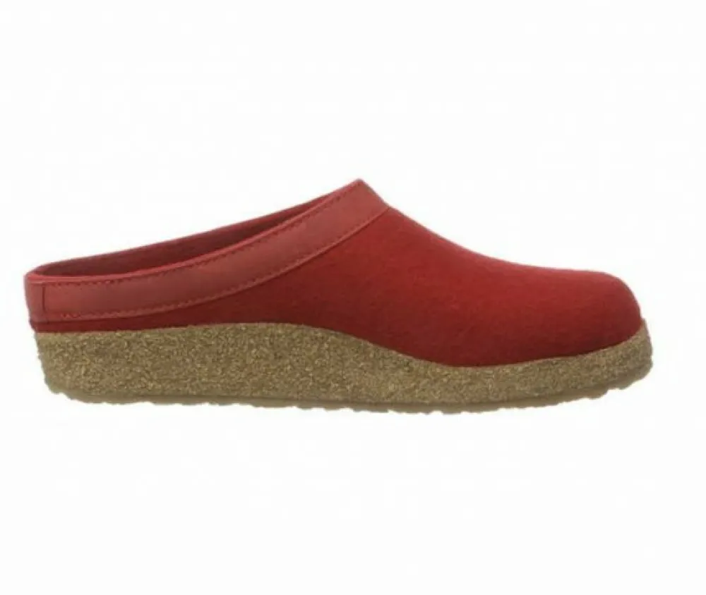 Bequeme Damen Hausschuhe von Haflinger aus einem angenehm weichen Filzmaterial. Innen ist der Schuh mit hochwertigem Filz augestattet. Der Schuh hat eine normale Weite. Der Absatz ist durchgehend flach. Die weiche PU-Sohle schont die Gelenke und federt jeden Ihrer Tritte optimal ab. Die Schuhgröße fällt regulär aus.