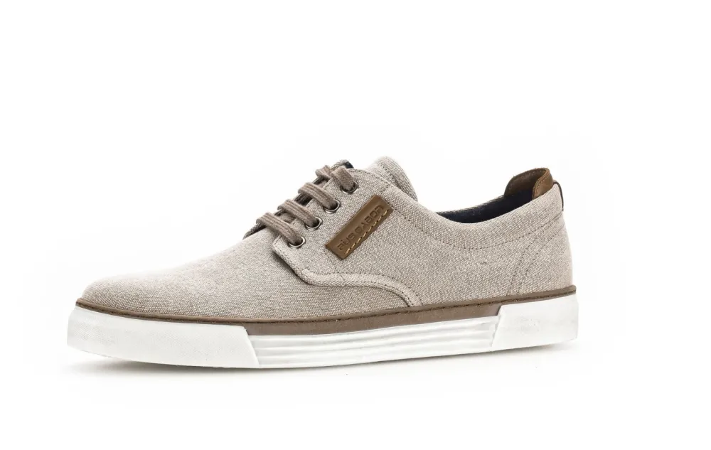 Schöne Herrenschnürschuhe von Gabor aus einer hochwertigen Textilmaterial. Innen ist der Schuh mit Textil augestattet. Der Schuh hat eine normale Weite. Der Absatz ist durchgehend flach. Die Laufsohle ist aus Gummi. Der Artikel verfügt über einen Schnürverschluss. Die Schuhgröße fällt regulär aus.