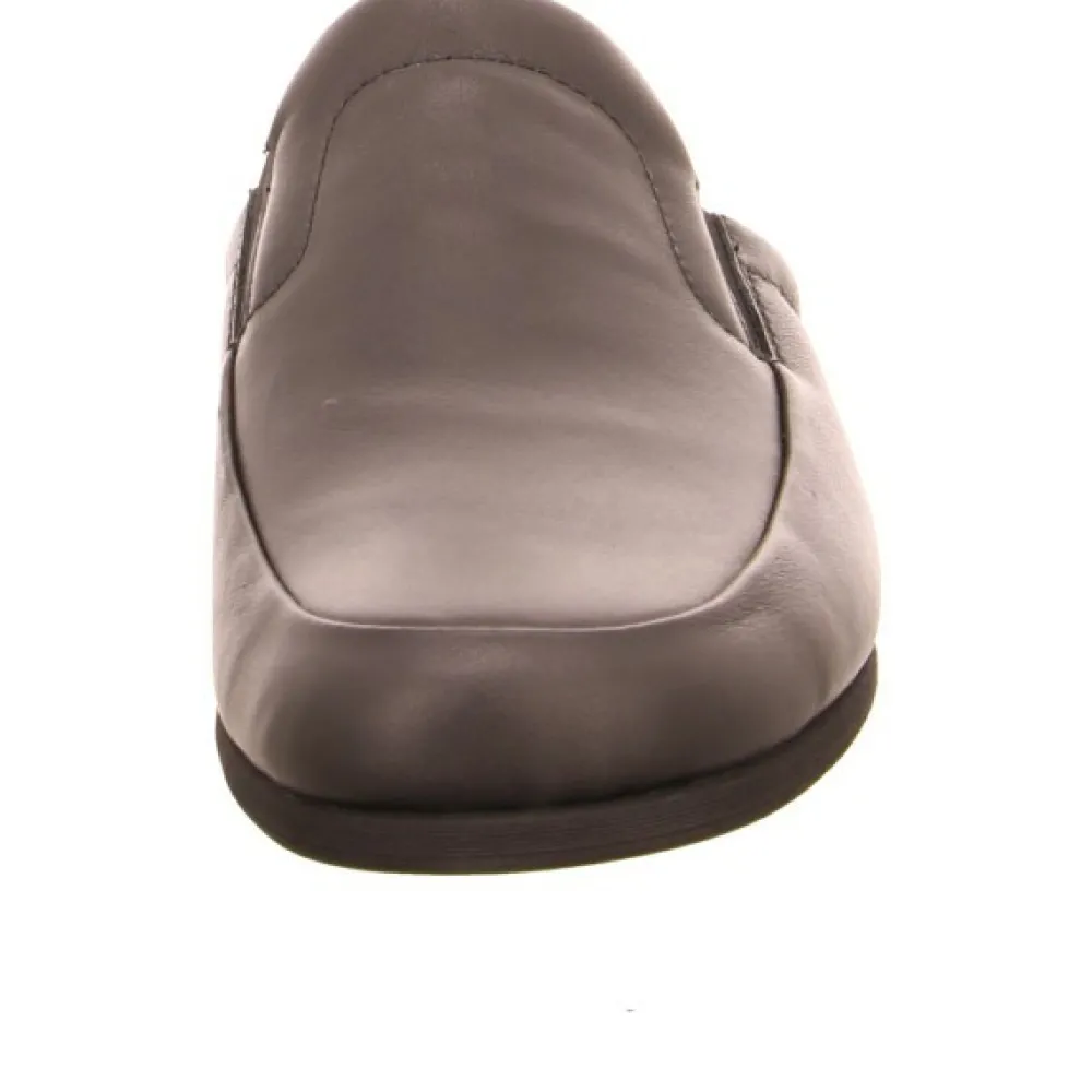 Bequeme Hausschuhe für Herren von Rohde aus einem feinen hochwertigem Glattleder. Innen ist der Schuh mit einem cromfrei gegerbtem Leder ausgestattet. Der Schuh hat eine normale Weite. Der Blockabsatz hat eine Höhe von cirka 2 cm. Die Laufsohle ist aus Gummi. Die Schuhgröße fällt regulär aus.